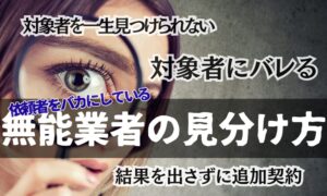 別れさせ屋(復縁屋)業界は残念ながら【自社の利益】しか考えない悪質業者が横行してる業界です。自社の利益ばかり考えるので、【依頼を成功させる事】よりも、【幾ら儲かるのか】という考えで依頼を請け負う業者が多く、利益ばかりを考えるので、業者側に落ち度がある時に、【和解】の申し入れをしてくる業者も少なくありません。